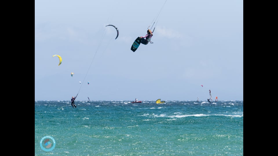 On Day 2 in Tarifa, the wind blew the riders into action right away as the riders began to set up their quivers and were blasting their zone-in playlist upon arrival. Although the wind was nuking beyond expectations, bearing in mind this was a Freestyle competition the judges tried to maintain the Freestyle element as primary as they continued with the Mixed format applied from the previous day at first (7 trick attempts, best 4 counting: 2 Freestyle 2 Big Air tricks). Nico Franco (ESP) and Robin Goetgebeurg (BEL) had a particularly tough time in the first heat of the day. The gust must have blown Franco’s confidence we experienced the previous day out of his system as he failed to land any of his tricks! Lorenzo Calcano (DOM) managed to keep his head together as he landed 5 of his 7 attempts relatively smoothly. France must have prepared Julian Krikken (FRA) well for these conditions as he managed to pull most of his tricks with that extra ‘umf’ he needed to score the winning points. In the women's competition, straight into the action as they head out to the battlefield after that. Claudia Leon (ESP) rode that excitement straight into the water, kicking off the women’s division with a banging total score of 15.08! Following that Nathalie Lambrecht (SWE) faced intimidating Kajiya (BRA) unfortunately only managing to land one of her tricks. This made it easier for Kajiya to wipe her out of this round fly up the ladder. Heat 5 was a thrilling one, as our three queens Rita Arnaus (ESP), Paula Novotna (CZE), and Hannah Whiteley (GBR), all known for pushing the girl's level higher put on a show! Mikaili Sol (BRA) our youngest Woman on tour wrapped up the Women’s action for the day, once again demonstrating that there was no age limit for sending it. Her first time on the water of the day, she warmed up with her first two trick attempts. By the thirds and fourth, you could tell she was comfortable, but no one was ready for her HUGE Frontroll Board off she had been keeping for us in her back pocket scoring a solid 8.