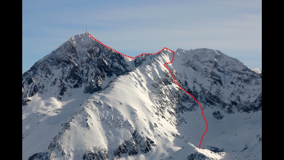 Le Dièdre d'Oncet depuis le Pic du Midi : ski de pente raide
