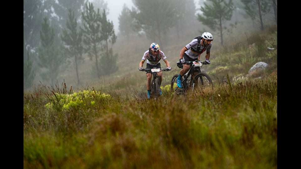 It’s not over until it’s over. A disastrous rear-wheel puncture saw Scott-SRAM MTB-Racing concede the Yellow Jerseys to Cannondale Factory Racing on Wednesday, proving once again that the Absa Cape Epic is won only when you cross the finish line at Val de Vie Estate during the Grand Finale. Cannondale Factory Racing put on a tactical clinic for the rest of the field on Wednesday’s brutal 107-kilometre Stage 3 and ended up not only taking the stage win, but also moved firmly into first on the overall GC. Henrique Avancini and Manuel Fumic now have a 2:41 buffer over Scott-SRAM MTB-Racing, with the BULLS Heroes outfit of Urs Huber and Simon Stiebjahn in third, 7:45 adrift. Four-time race winner and current Absa Cape Epic Women’s category leader, Annika Langvad’s mantra for the gruelling eight-day event has always been: “Never to take anything for granted until you cross the finish line”. On Wednesday her conservative approach was once again vindicated as the second-placed team of Ariane Lüthi and Maja Wloszczowska (Kross-Spur Racing) were pretty much blown out of contention by punctures. In the dice for the minor placings, Candice Lill and Adelheid Morath (Summit Fin), who were with Lüthi when she had her first puncture, have moved up to second overall after finishing the 107km ride six minutes behind the leaders.